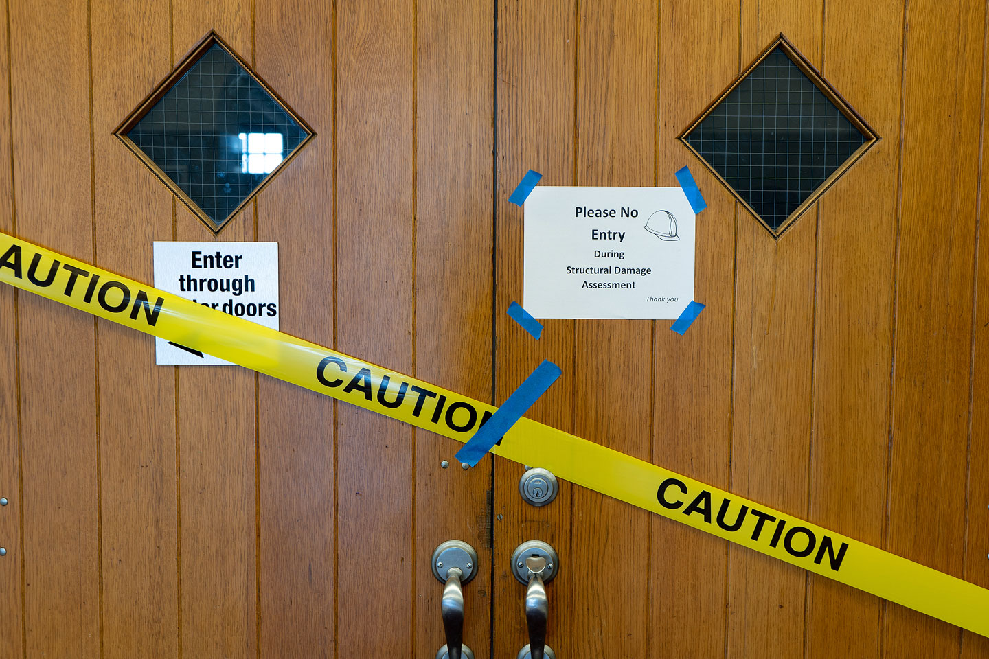 In addition to restrictions on public gatherings because of COVID-19, the Grand Theatre at South City Campus remains closed for a structural damage assessment after the March 18 earthquake. (Jared Stanger)