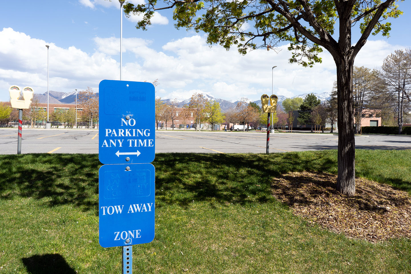 The east parking lot at South City Campus sits empty during the spring 2020 semester. Salt Lake Community College transitioned all courses to online in response to COVID-19. (Jared Stanger)